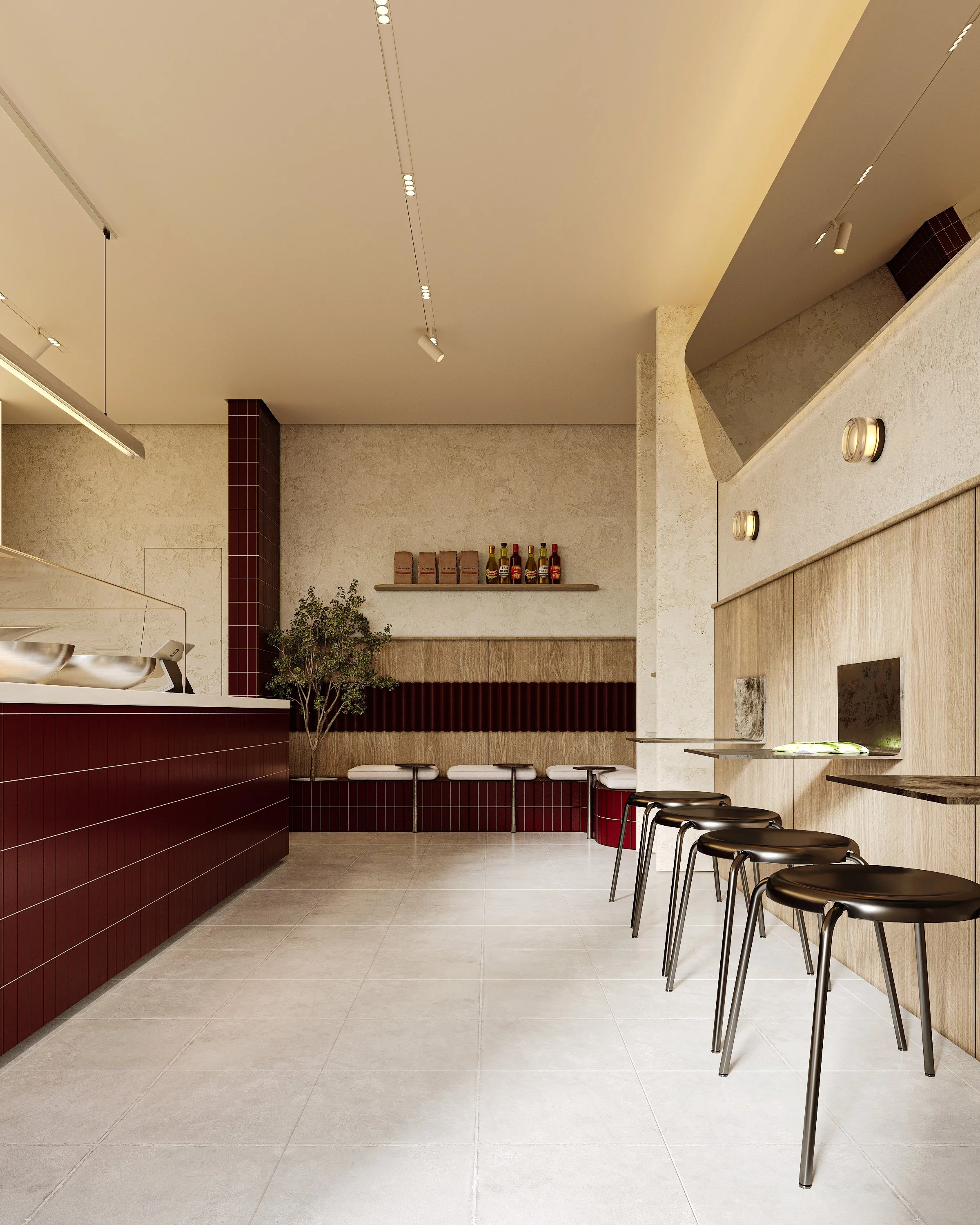 lovo sandwich bar in Riyadh City was designed with simplicity and efficiency at its core. Clean lines, minimalistic details, and an open layout create an inviting space where customers can quickly grab their favorite sandwiches and go. Materials were chosen for durability and easy maintenance, ensuring a seamless flow during busy hours. The countertops are sleek and functional, with clear signage and accessible grab-and-go shelves to enhance convenience. Warm lighting and subtle, natural tones provide a welcoming atmosphere, making each visit effortless yet enjoyable. This design perfectly balances speed and style, catering to the fast-paced lifestyle of Riyadh’s residents.